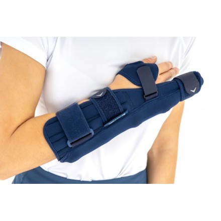 Это модульный ортез для «боксерского перелома» (перелом шейки V или иногда также IV пястной кости. Ортез стабилизирует пястные и межфаланговые суставы IV и V пальцев. Инновационный ортез можно также применять при хирургии кисти в качестве иммобилизации или для реабилитации. Ортез имеет шину из армированного полиамида с плавной регулировкой положения при помощи имбусового ключа.
