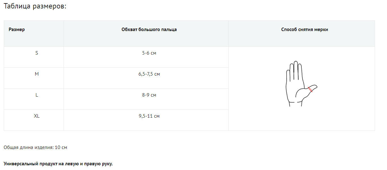 - Ортез имеет открытую конструкцию, подходит как на левую, так и на правую руку